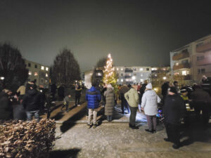 Då var vår julgran tänd! Tack alla härliga grannar som kom och spred glädje och värme